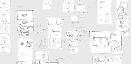 We began with a multitude of low-fidelity sketches to brainstorm ideas for motion, transition, and content. We then moved on to wireframes to finalize the content and user journey/behaviors.